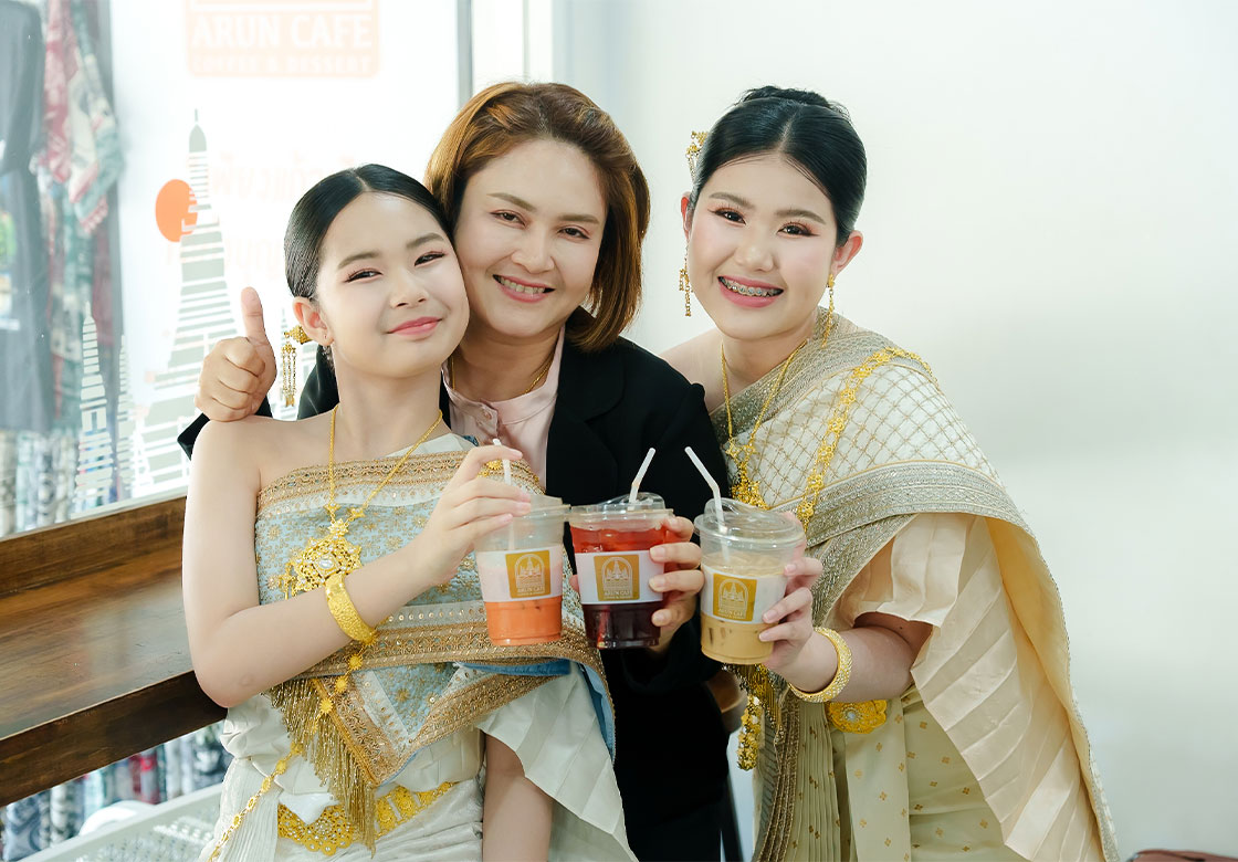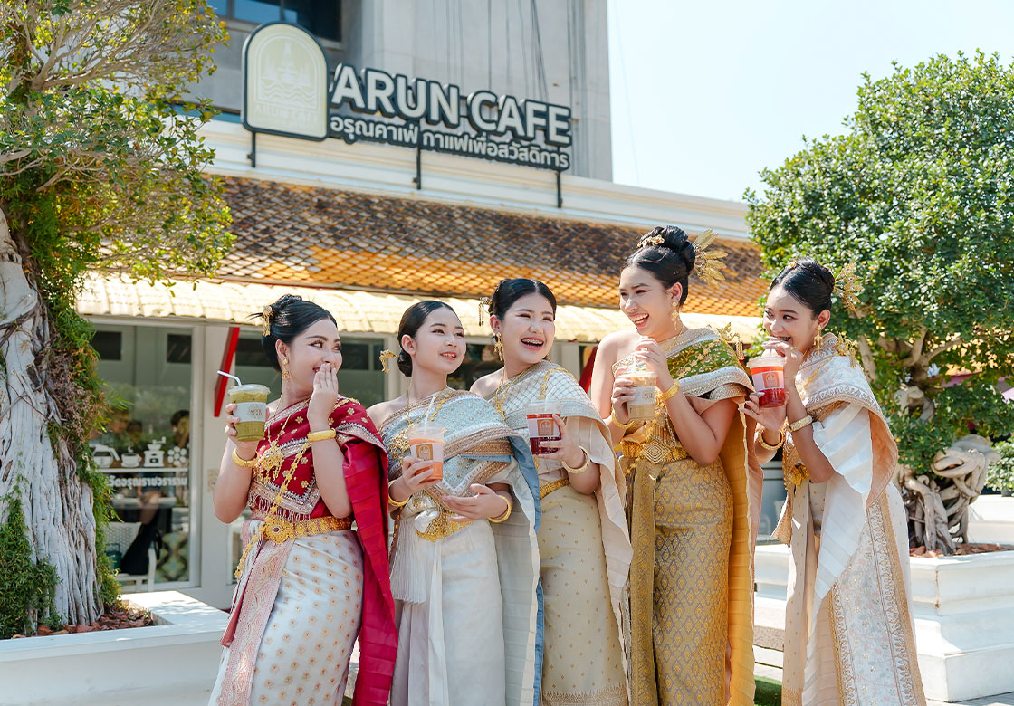 The ARUN CAFE coffee shop is located in the Stone Garden, next to Phra Viharn Noi of Wat Arun Ratchawararam. It warmly welcomes parents, philanthropists, and tourists from around the world. Visitors who come to admire the beauty of Phra Prang Wat Arun, a cultural and architectural heritage site of Rattanakosin listed in the preliminary UNESCO World Heritage records, are invited to enjoy the drinks of ARUN CAFE as a way to make merit while also experiencing happiness.