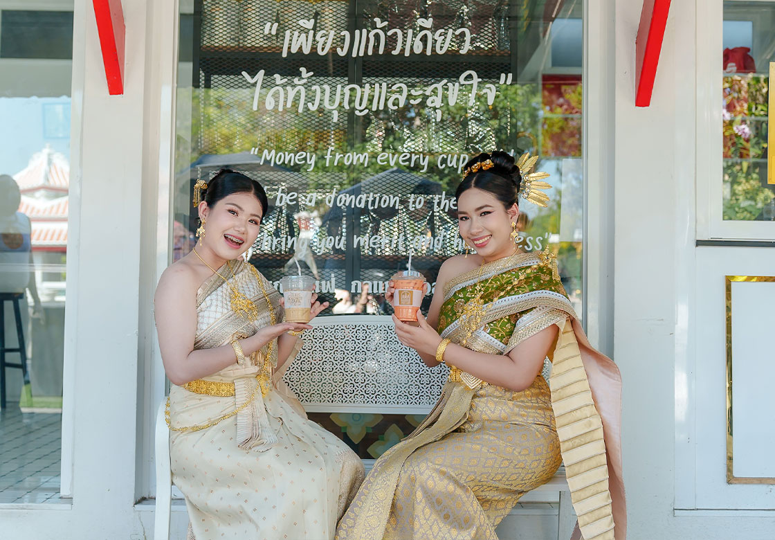 这家“ARUN CAFE — 只需一杯,既得功德,又得欢喜”的咖啡馆,位于郑王庙小殿旁的石园区域。 因此,诚挚邀请全国各地的善心大众,以及来自世界各国的游客朋友们, 在前来参观郑王庙大佛塔之宏伟之美时—它是拉达那哥欣王朝的建筑遗产,