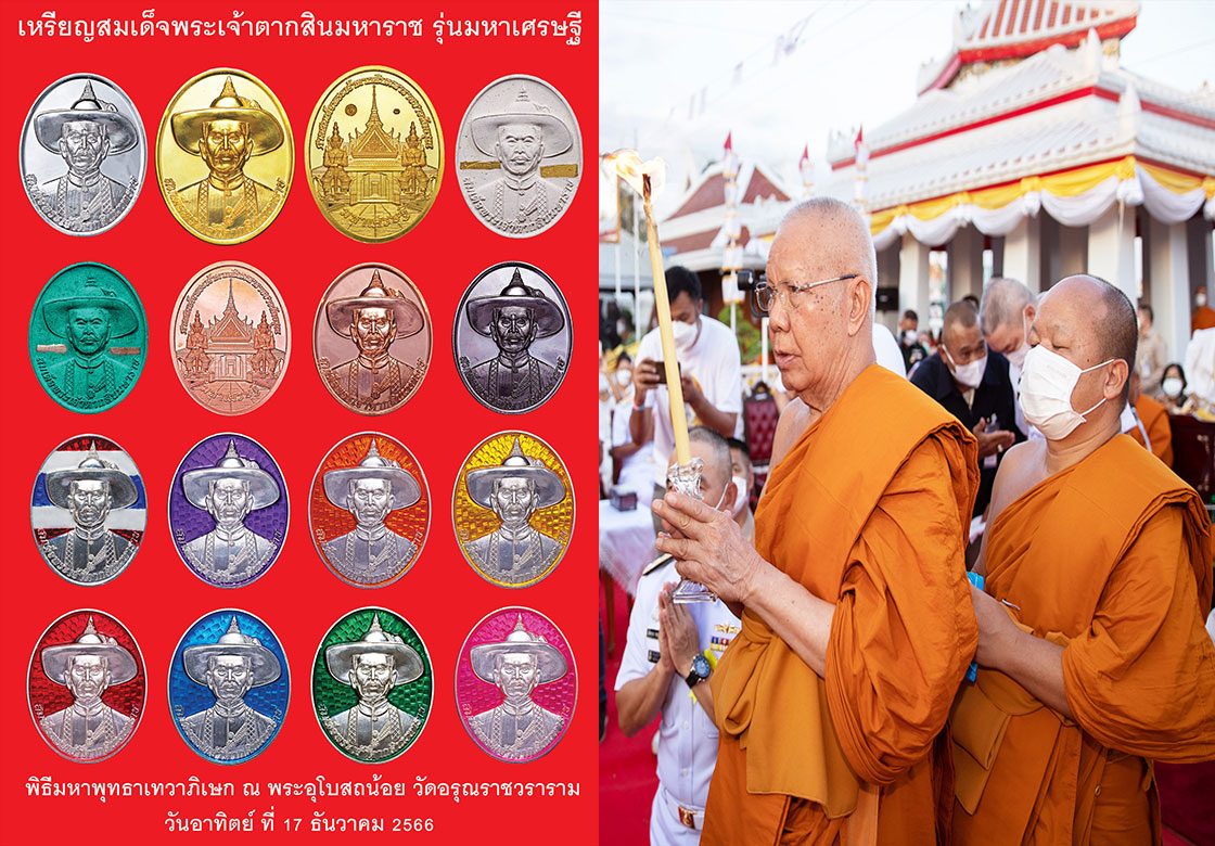 งานพิธีมังคลาภิเษกเหรียญสมเด็จพระเจ้าตากสินมหาราช รุ่นมหาเศรษฐี และพระผงของขวัญสมเด็จพระเจ้าตากสินมหาราช รุ่นมหาเศรษฐี เนื่องในวาระครบรอบ ๒๕๕ ปีกรุงธนบุรี และพระเดชพระคุณหลวงพ่อ พระพรหมวชิรเมธี เจ้าคณะภาค ๙ เจ้าอาวาสวัดอรุณราชวราราม มีอายุวัฒนะมงคล ๘๐ ปี โดยประกอบพิธีภายในโบสถ์น้อย วัดอรุณราชวราราม เมื่อวันที่ ๑๗ ธ.ค ๒๕๖๖ ที่ผ่านมา