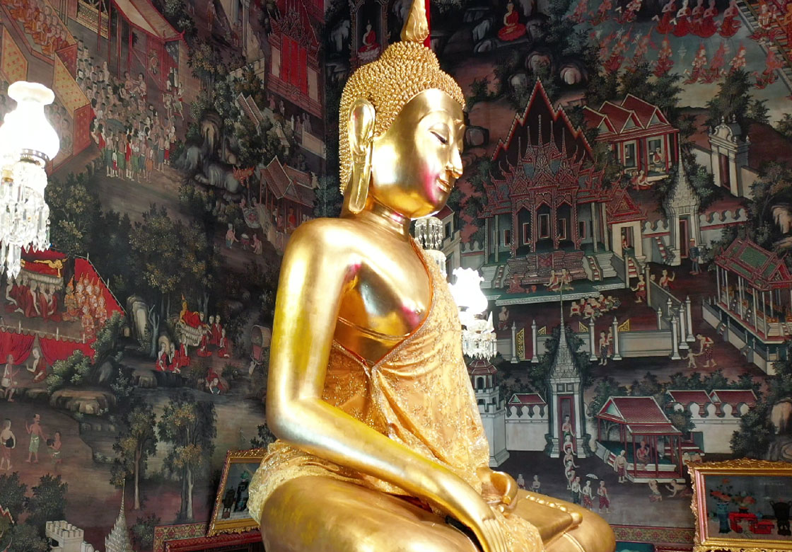 The image is deeply connected to the Chakri Dynasty. Wat Arun served as the royal temple of King Rama II, who personally supervised its restoration and even sculpted the model for the face of this principal Buddha. After his passing, in 1895 (B.E. 2438), King Rama IV ordered that King Rama II’s ashes be enshrined within the base of this Buddha image.