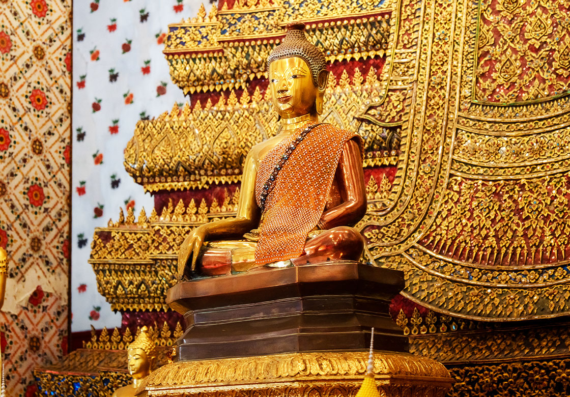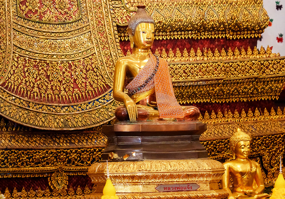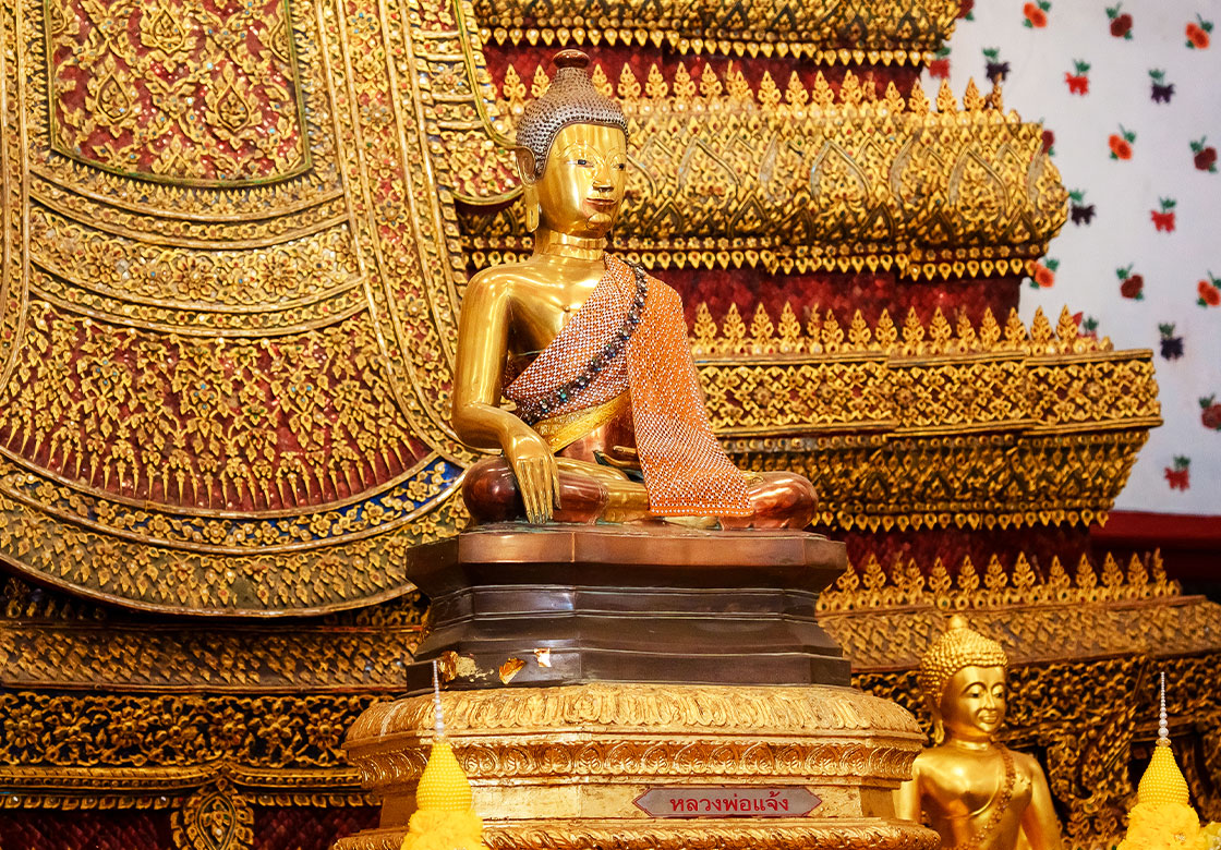 Phra Arun, also called Phra Chaeng, is another sacred Buddha image enshrined in the vihara of Wat Arun. This ancient Mara Vijaya statue is located in front of the principal Buddha image, Phra Phuttha Chumphonut Mahaburuth Lakkhana Asityanubhapit. It has a lap width of 50 centimeters.