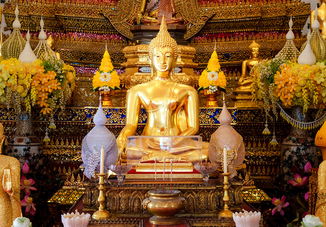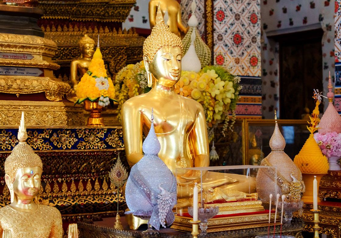 Later, when the plaster cracked and fell away, the image was revealed to be an ancient bronze Buddha of the Sukhothai period, displaying exquisite artistic beauty. It was subsequently enshrined in the vihara of Wat Arun, where devotees can now worship and make offerings for blessings and prosperity.