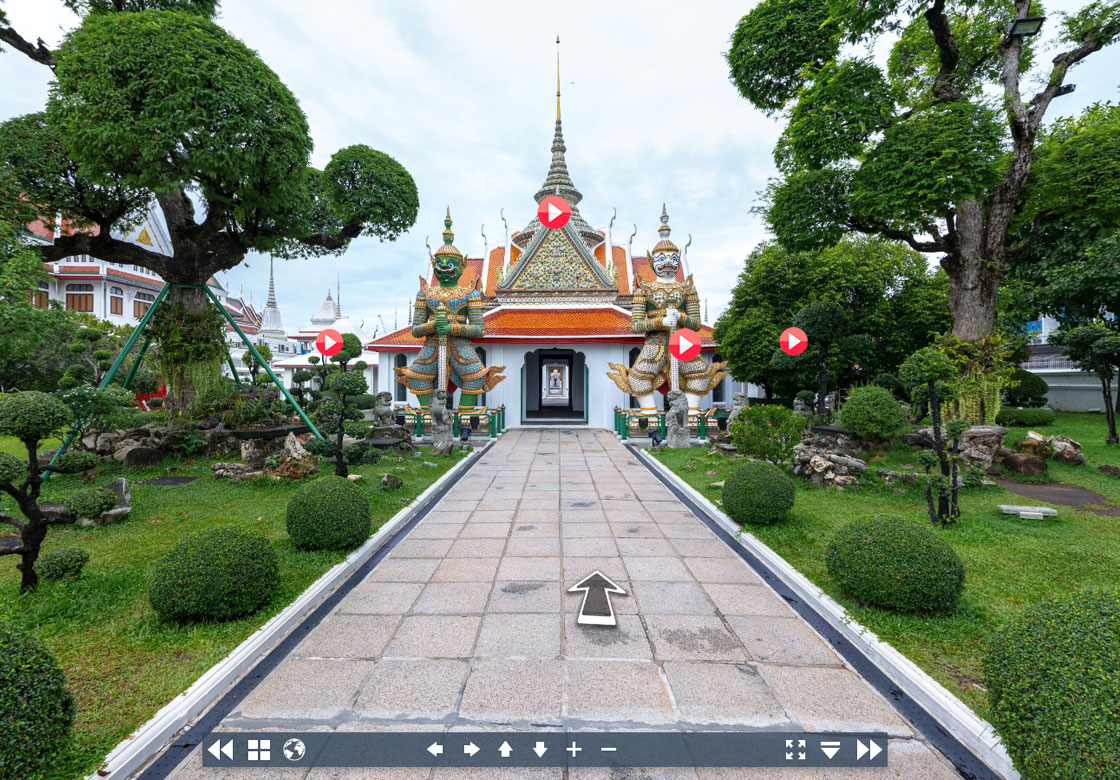 Within the “One App Tour Around Wat Arun” application, every significant landmark is accompanied by detailed video narrations explaining its historical background. Users can select their preferred language to gain a deeper understanding of the heritage and cultural value of each site. Under the development and supervision of Venerable Phra Wachiraratnaphon, Ph.D., the application has been designed to support three languages: Thai, English, and Chinese, allowing visitors from all over the world to easily access and understand the history of the monuments and artifacts within Wat Arun Ratchawararam, and to appreciate the temple’s beauty through the immersive 360-degree virtual system.